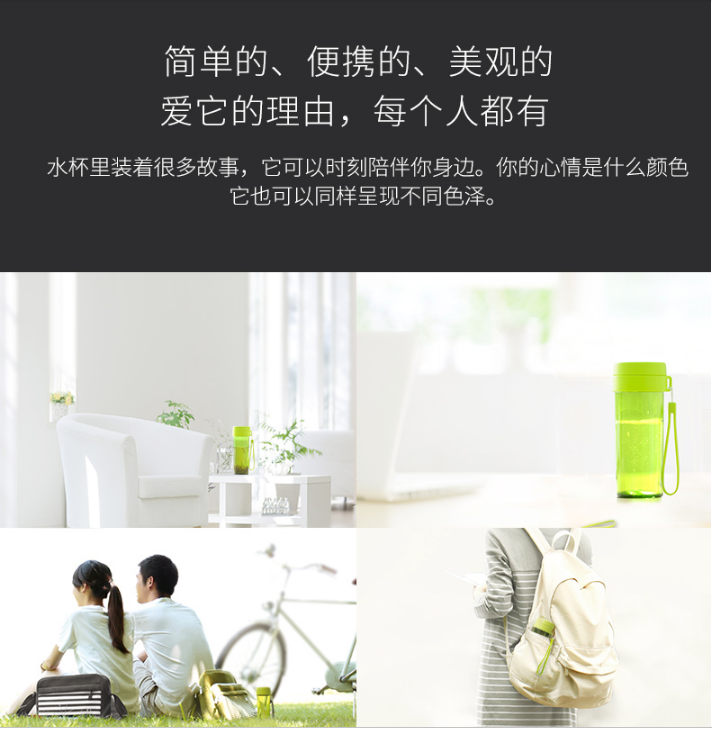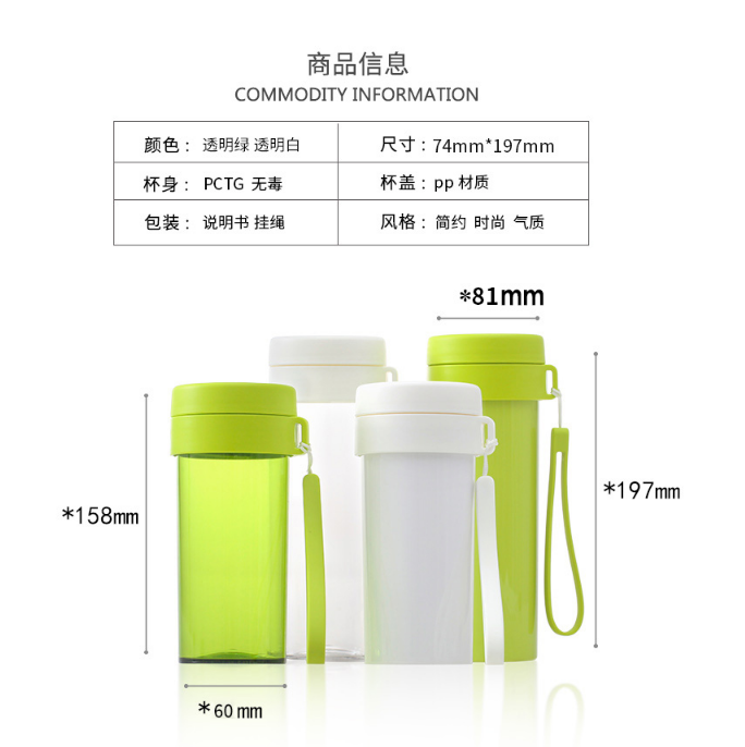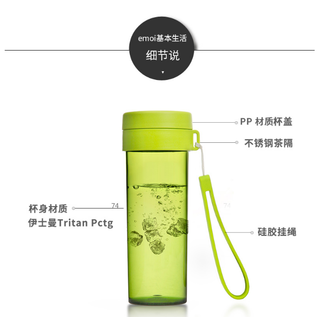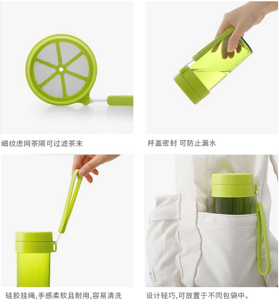 產品特點:傾斜防漏,堅固耐用,無毒塑料;熱水飲用無異味,低溫不易碎